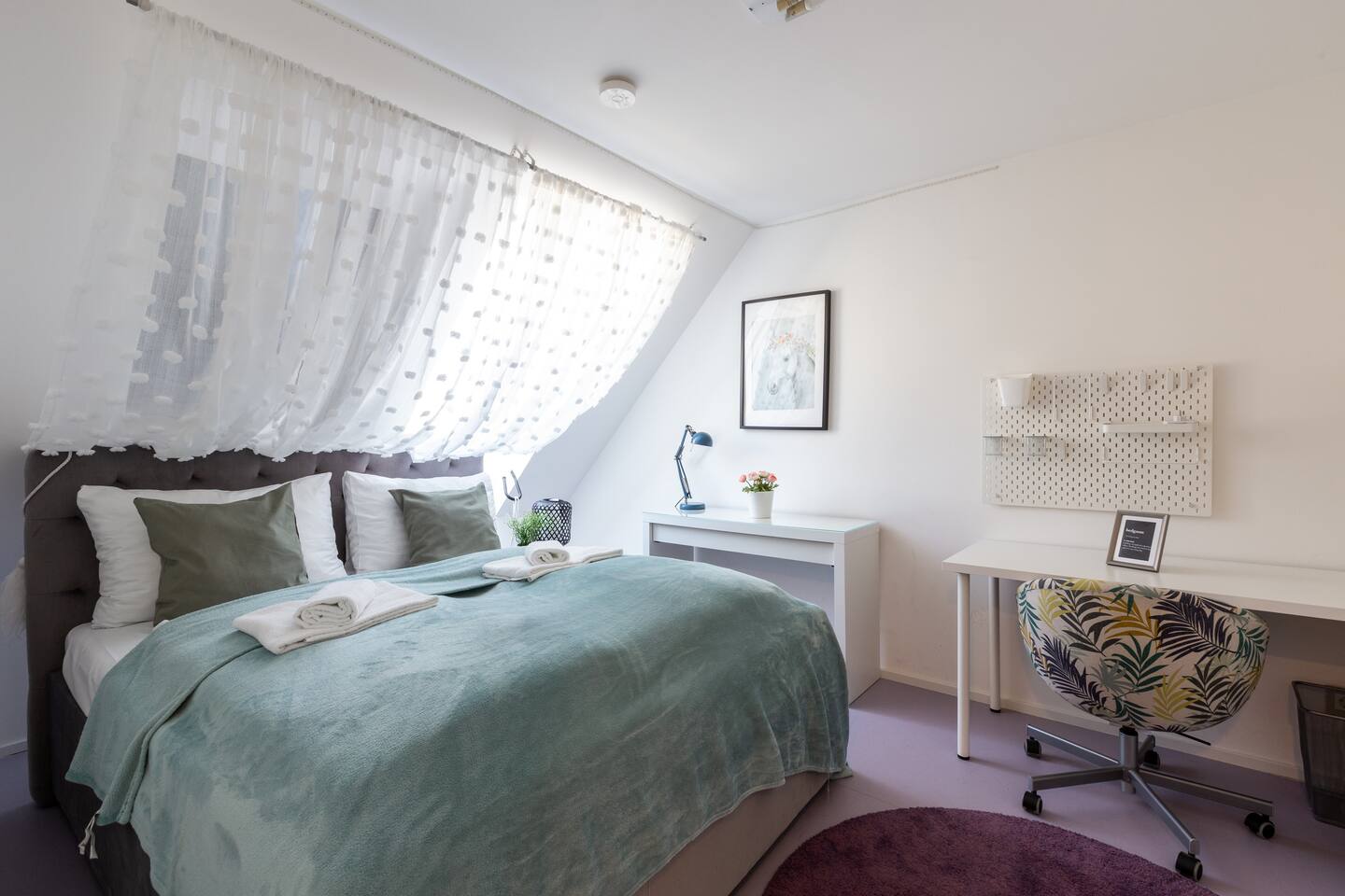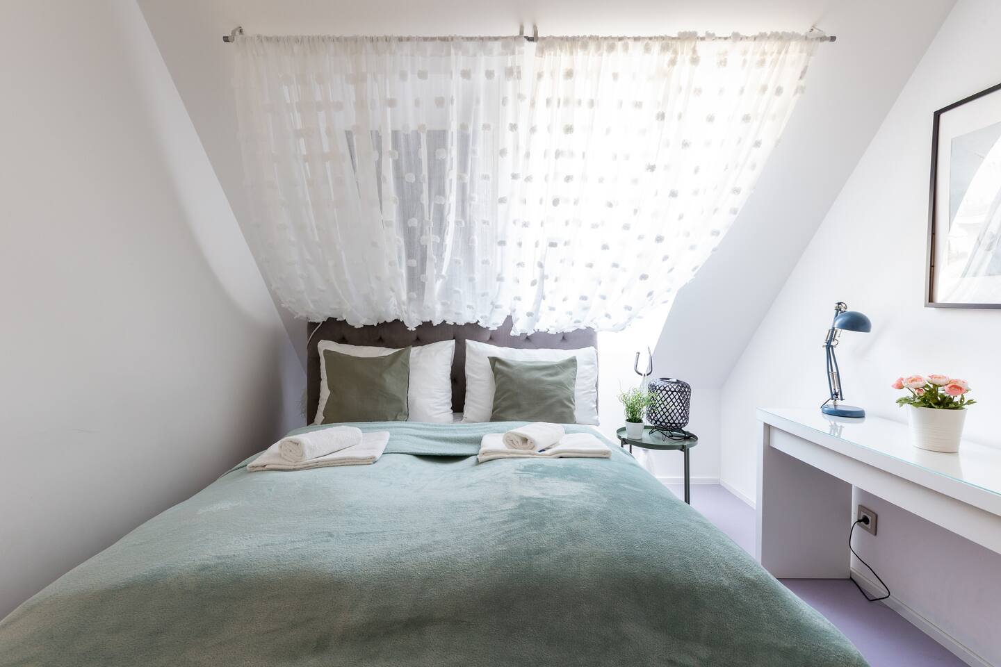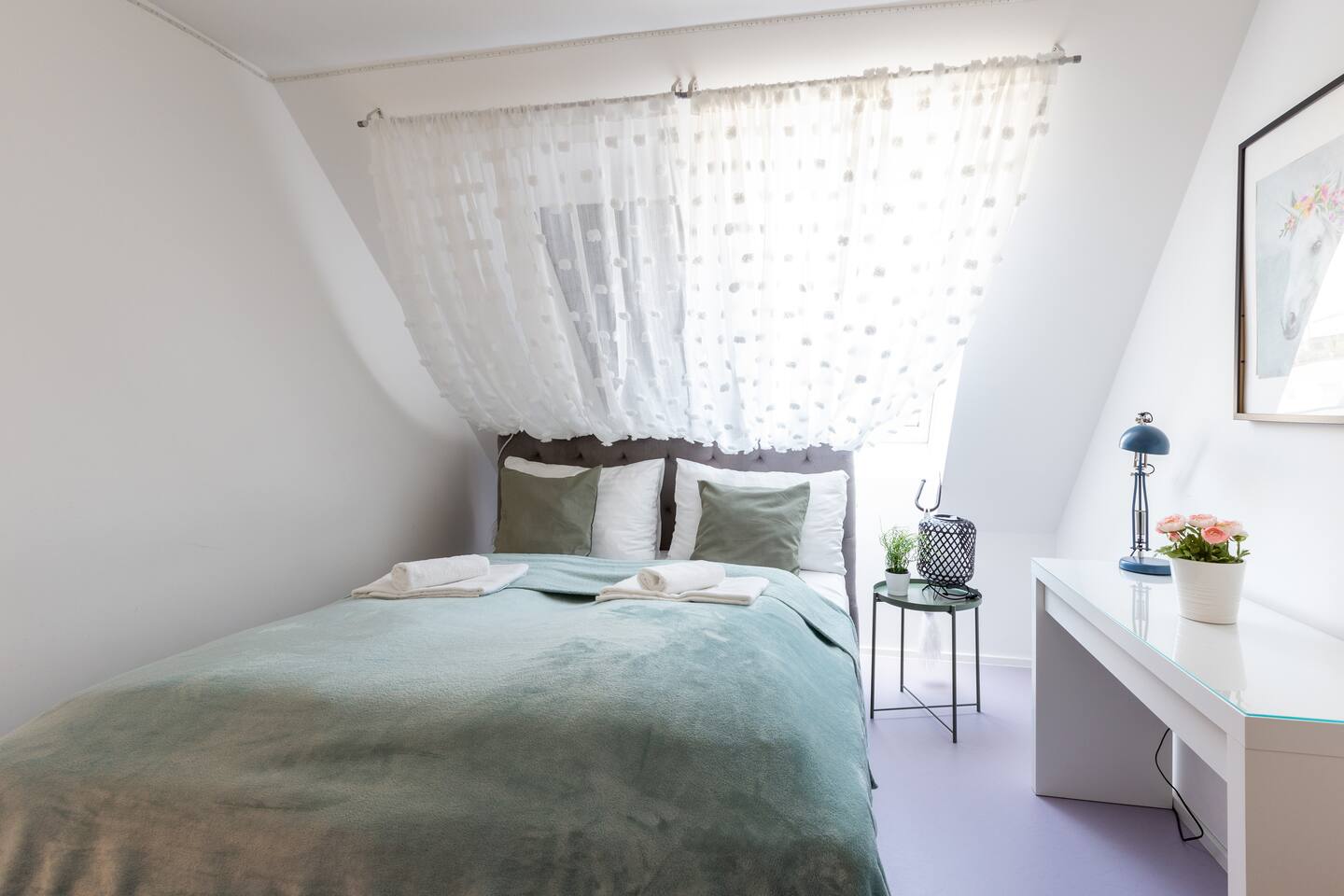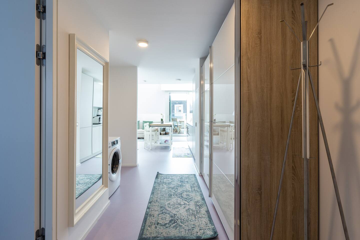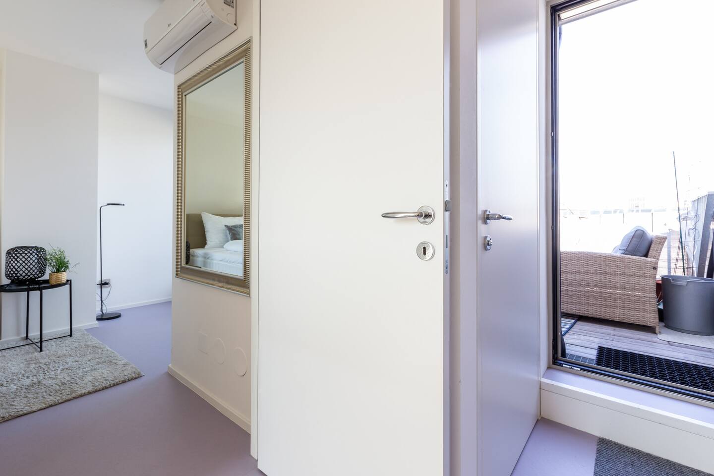 Bright and open space living room with a high end kitchen and all amenities needed. Living room contains a very comfortable sofa bed for 2 people. One of two terraces is at the living room. Upstairs is a second, even bigger terrace. The apartment has two master bedrooms. Upstairs at gallery is another sofa bed for two people. To protect the environment and respect the neighborhood, parties are not allowed in the apartment. We have a DB system in the apartment and video surveillance in the corridors (outside the apartment).